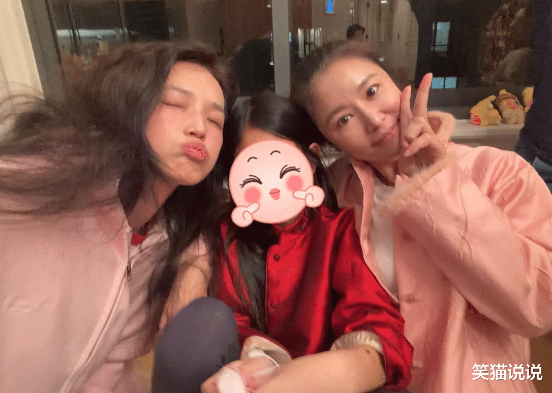 舒淇还晒出了她与林心如以及林心如的宝贝女儿小海豚的合影,穿着大红色新中式的小海豚站在C位的位置,林心如和舒淇各自站在她的两边,两人都靠着小海豚,十分宠溺的样子。林心如和舒淇都摆出了不同的pose拍照,看起来很惬意,很有松弛感。