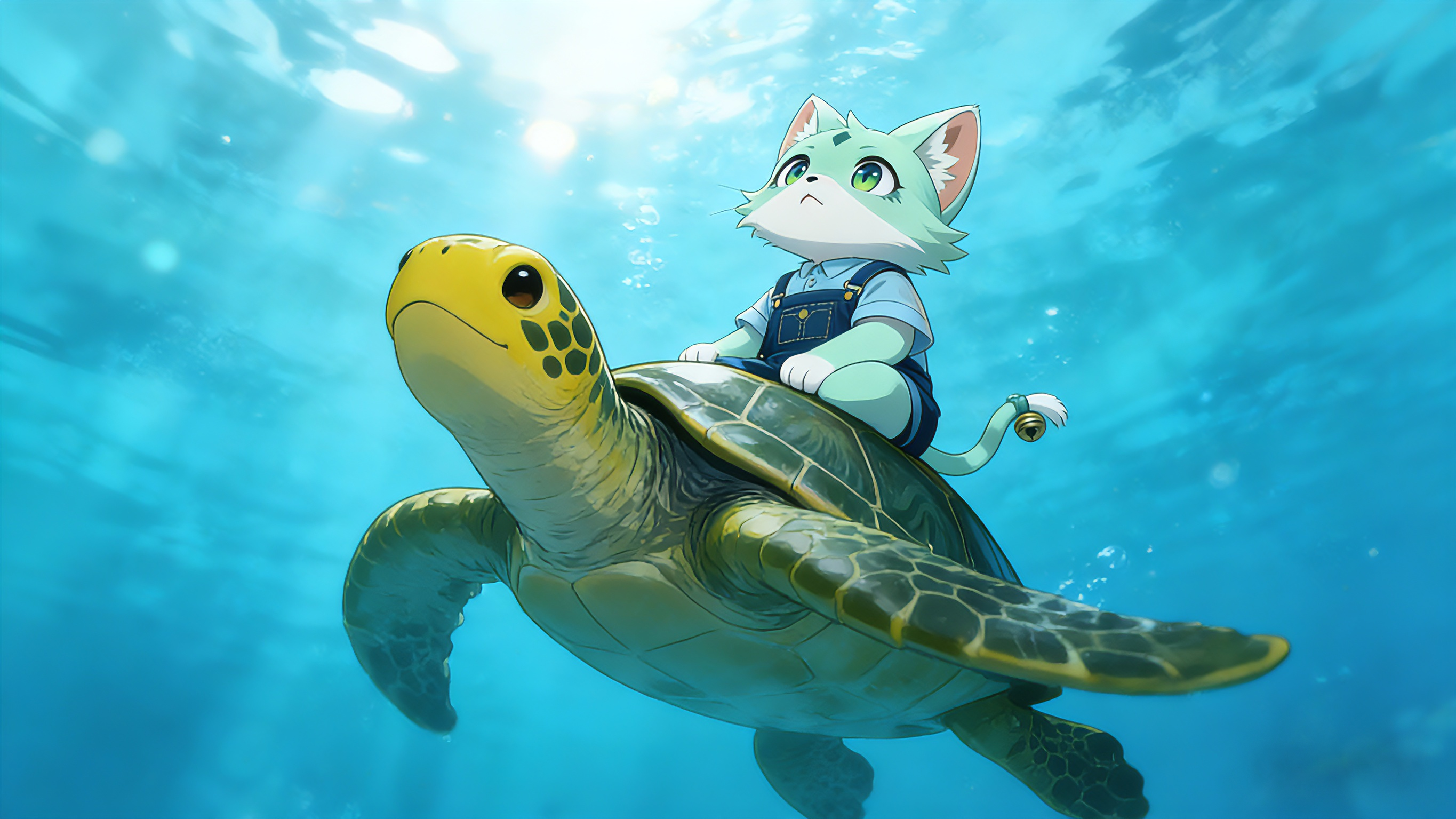 海风捎来的治愈小确幸😂 福运猫森泽蜷在海龟背甲,尾巴铃铛轻晃,阳光碎波落进绿眸,满是草木与海洋的温柔。翠禅族“平安喜乐