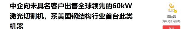 央媒在12月14日报道,美国一家公司通过匿名方式,向我国一民营企业进口了一台60KW超高功率激光切割机。