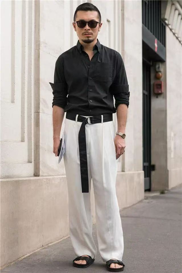 搭配公式:衬衫塞裤腰+ 西装裤 = 视觉增高10cm。短T恤 + 高腰短裤 = 露肤平衡比例。直筒休闲裤 + 白运动鞋 = 60岁爷爷都能穿的活力感