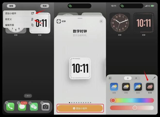 升级到 iOS 18.1 Beta 7 以后,时钟小组件总算能设置色调了。在 iPhone 主屏幕上长按,再点击「添加小组件」,就能把时钟小组件加到桌面上。接着选「自定义」,在「色调」那个选项里就能自己去设置小组件的颜色了。