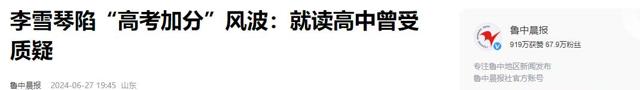 3.鲁中晨报:《李雪琴陷“高考加分”风波:就读高中曾受质疑》2024-06-27