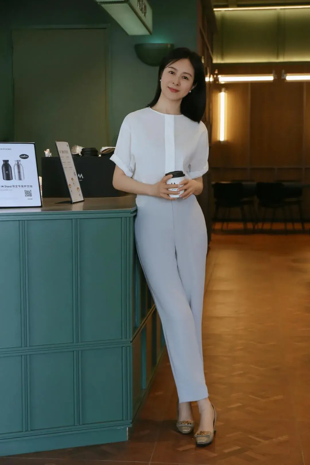 当然,如果是去上班的话,我个人还是比较推荐用下面这件白色的衬衫搭配上九分西裤,脚上踩了一双浅口的单鞋,这样的搭配会更干练,更得体。