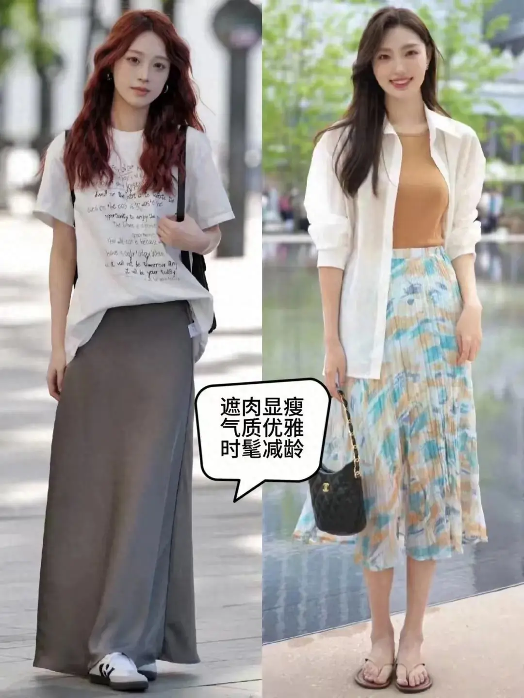 不管是中年女性还是美少女,裙子的款式是很关键的,而且长度也要盖过膝盖到小腿肚的位置,同时露出脚踝,这种情况下的话能延伸你的腿部线条,也显得更加的得体大方。