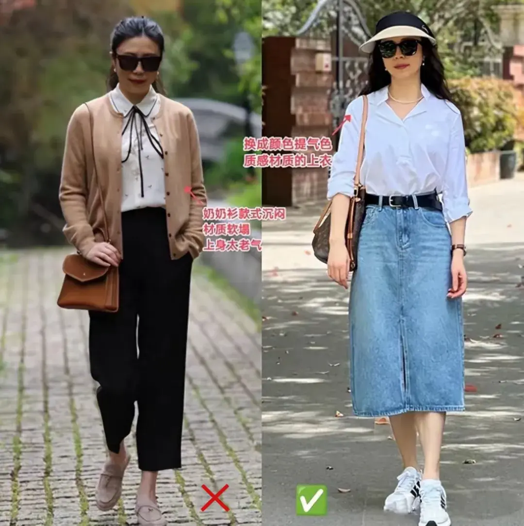 当然,年龄的不同,选择的衣服款式自然是不一样的,短款太个性,适合美少女,不适合中年女性。