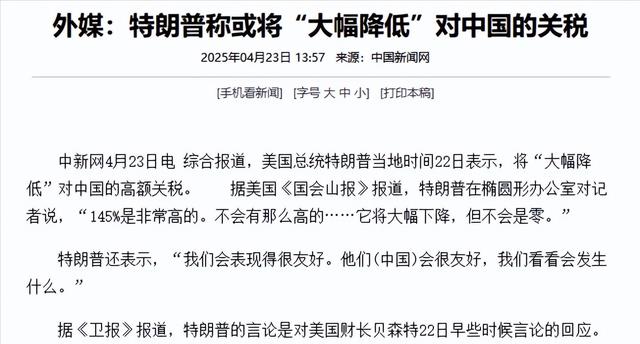 4月23日,特朗普在白宫内接受采访,竟首次公开承认“对中国施加的关税确实有点高”。
