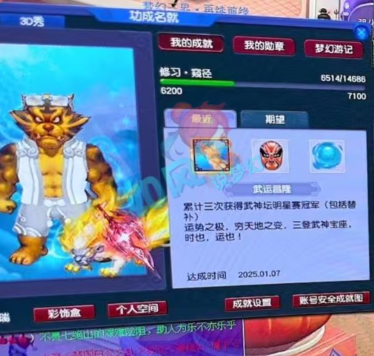 F哥的397神链号在领取奖励时,得到了累计三次获得武神坛明星赛冠军的成就。
