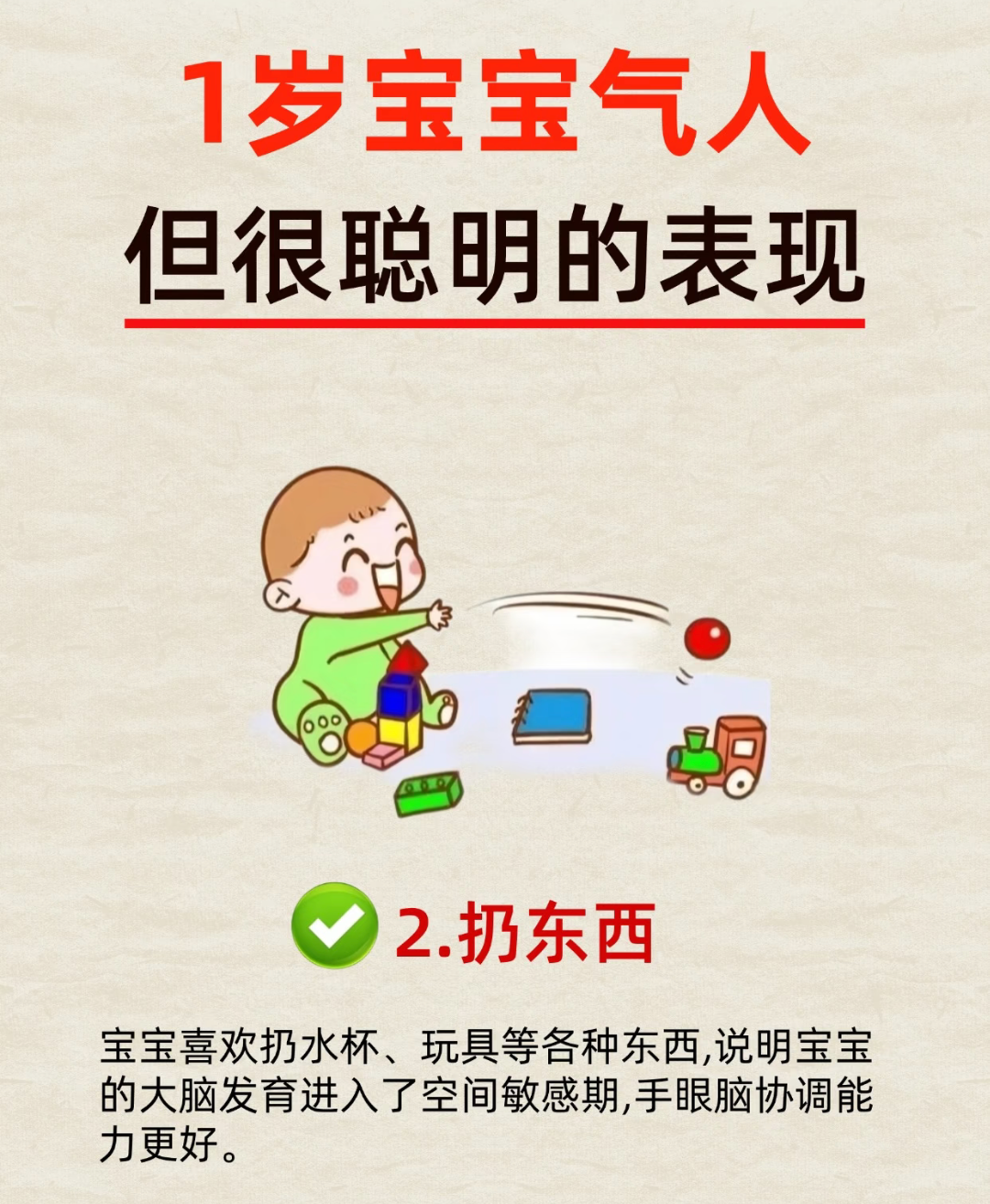 其实别急着上火,这些让你哭笑不得的行为,恰恰是宝宝大脑飞速发育的信号。他不是故意要气你,而是在用自己的方式探索这个世界,并且每一项“气人技能”背后,都藏着聪明的苗头。
