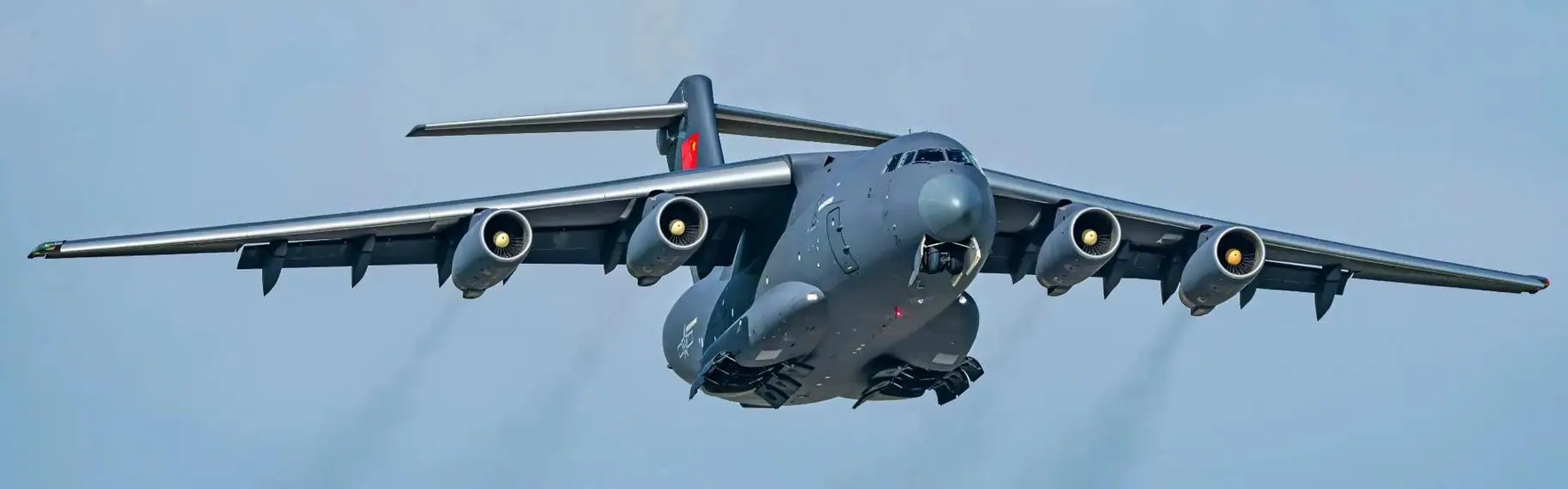 运20:早期:4台俄制D-30KP-2涡扇发动机,单台推力122kN(12.5吨),总推力488kN