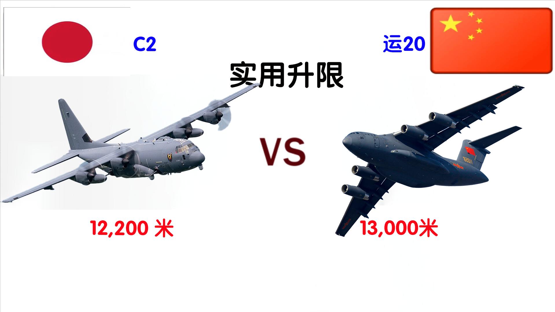 实用升限 12,200米 [__LINK_ICON] 13,000米 运20更高,高空适应性更好