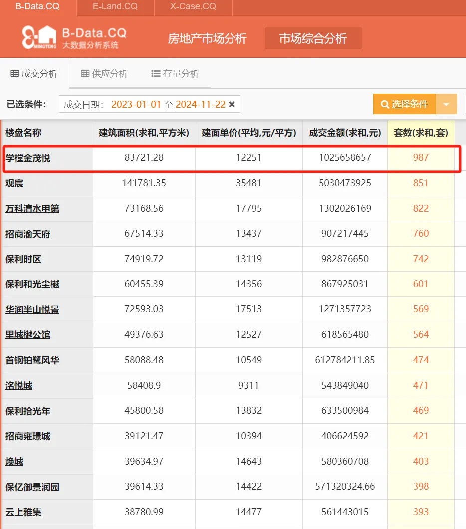 紧邻龙珠校,让学樘金茂悦轻松搞定了大量望子成龙的购房者。从2023年到上周五,它一共成交了987套房,位居重庆中心城区小高层成交套数排行榜的第一位。(数据源于铭腾机构)