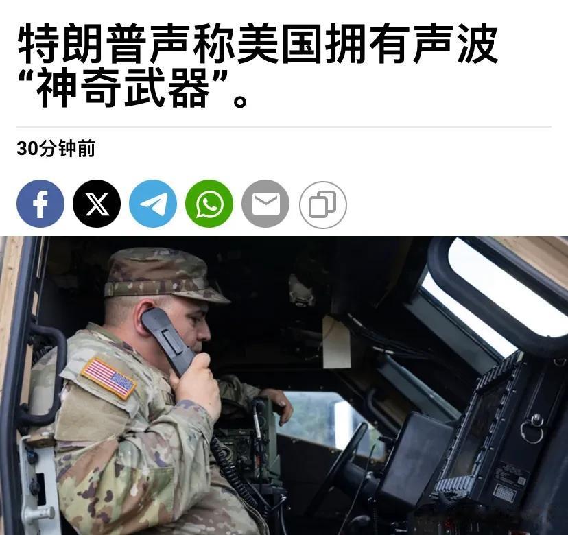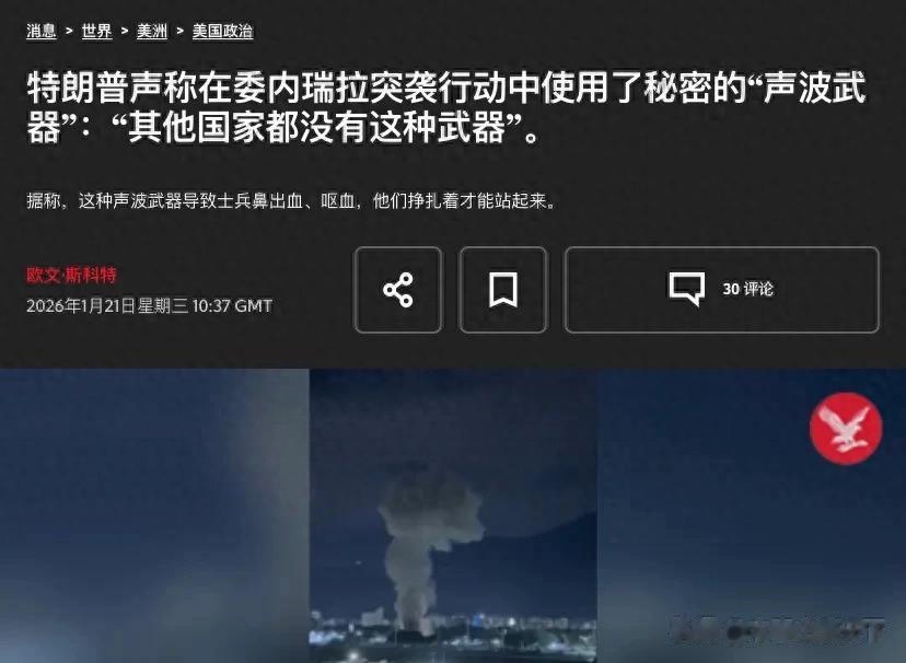 1月21日,特朗普接受了媒体专访,第一次公开承认,美军特种部队在今年初突袭委内瑞拉时,使用了一种别国没有的“神奇武器”,也就是声波武器。他说那是一次惊人的攻击。