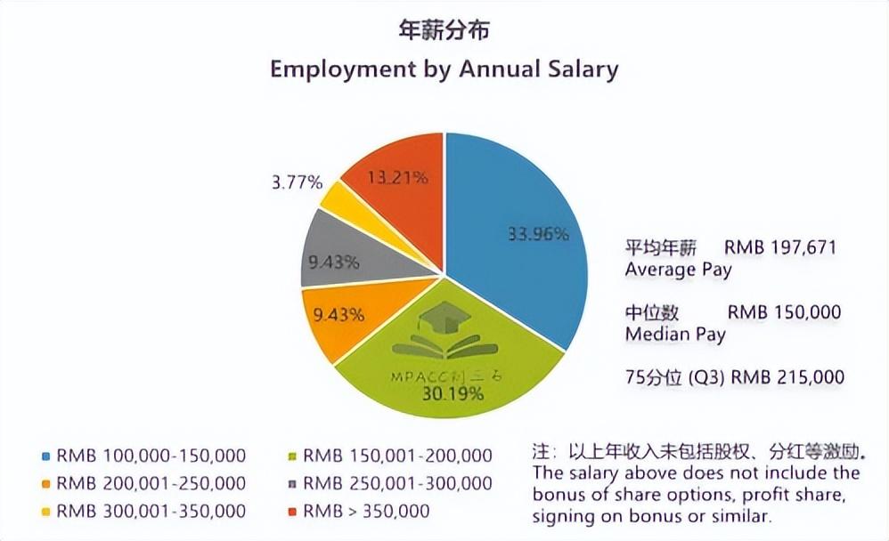 从上图可以看到,整体而言中山大学会计专硕的毕业生年薪区间在10万-15万以及15万-20万区间的最多,达到了60%以上,平均薪酬水平在20万左右,中位数为15万左右,考虑到就业选择中很大一部分的单位是国企和公务员,应该是没有将福利补贴那些算进去,实际的薪资水平应该达到15万+问题不大。
