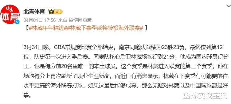 值得一提的是,下赛季也许就在CBA看不到林葳了,因为据国内媒体透露他准备往更高水平的联赛发起冲击......希望是下一个崔永熙,乃至做得更好。