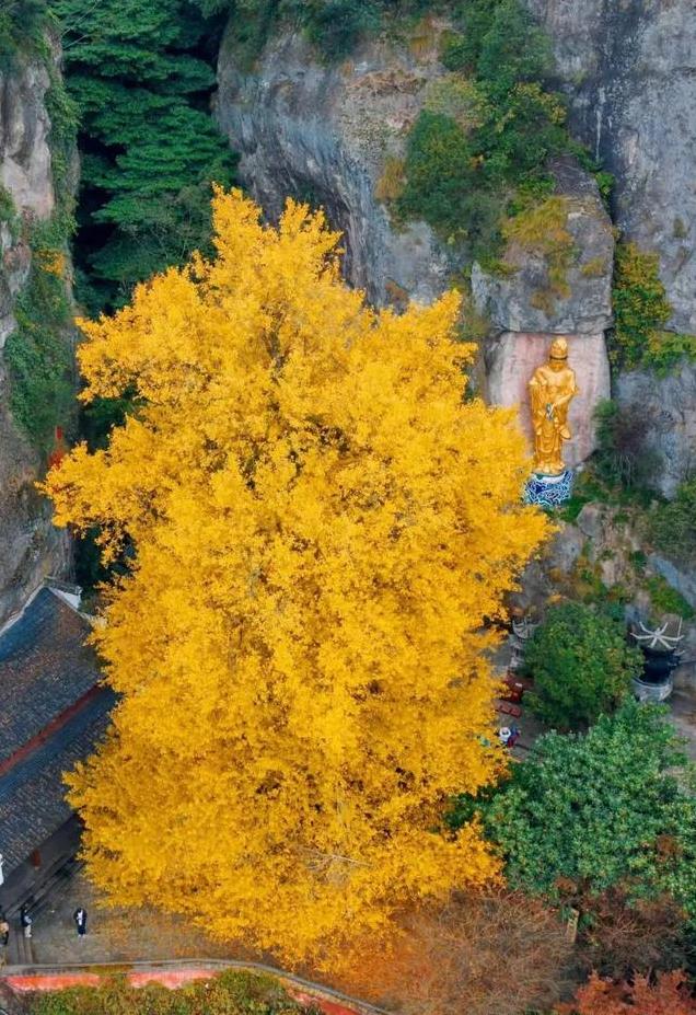 千年古银杏树:这株近千年的古银杏树远远便能望见,我也是第一次见到有十几层楼那么高的银杏树,微风一吹,金灿灿的落叶漫天飞舞,真的太美了~旁边还有个金黄色的麻将牌,寓意着财源滚滚来。