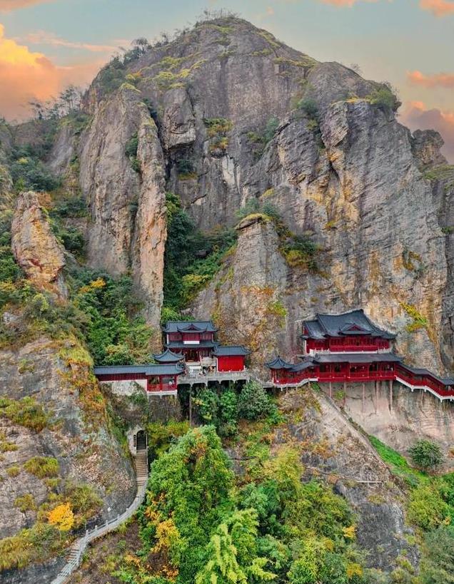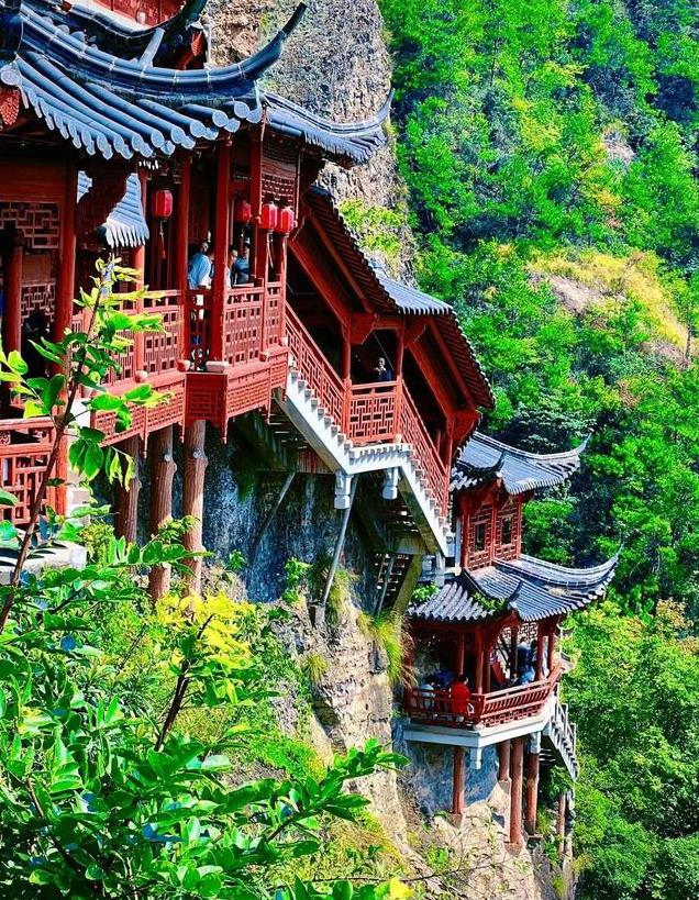 位于浙江省建德市,这里有一半嵌于岩腹,一半凌空绝壁的江南第一悬空寺,每年深秋时节,这里更是漫山金黄色,秋天的美好都在这里。
