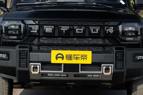 这车外观特别硬派,方盒子的造型越野感十足。它延续了经典的家族设计,前脸是多边形蜂窝格栅,搭配粗壮的镀铬条,LED大灯棱角分明,加上下面的银色护板,越野气质更强了。中网和两侧黑化大灯连成一体,里面是6段式的网格布局,“JETOUR”字母标很醒目,再配合下方硬朗的雾灯,点亮之后视觉效果直接拉满。一想到晚上露营的时候,点亮真是太帅了!车身侧面线条挺流畅,配了19英寸铝合金轮毂和车顶行李架,这出去越野或者过年回老家,很多行李都可以放车顶上,方便了很多。还有加宽的上下车踏板,这个对家里孩子老人上下车真是太友好了。车尾带着外挂备胎和拖车钩,有极夜黑、深海蓝等5种颜色可选,既保留了硬派风格,也能满足个性需求。