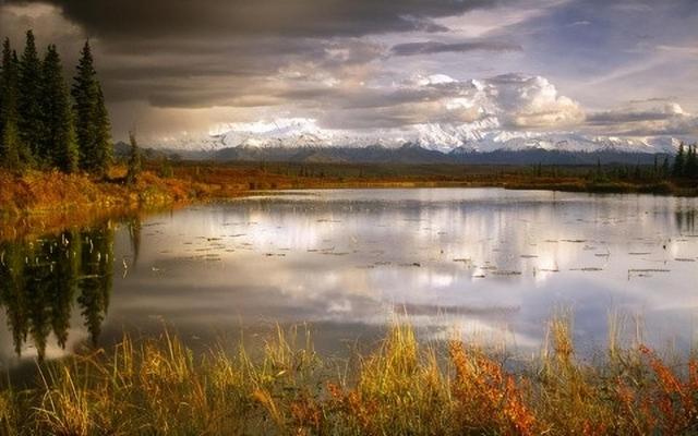 水也能反射色彩,所以这湖面是斑斓的,美丽的。