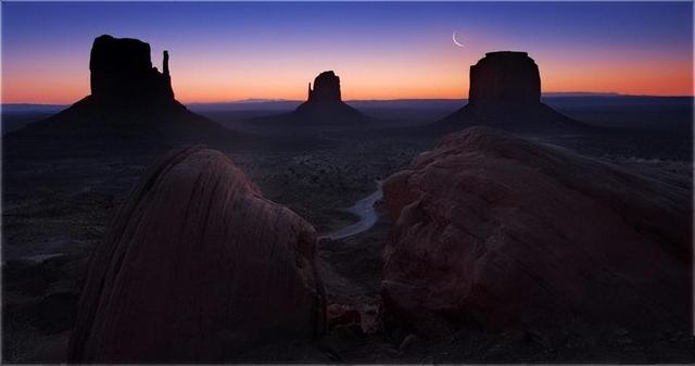这张照片的亮点在于近处与远处明暗的对比与色彩的渐变。