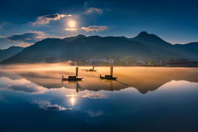 水是镜子,能够反射物体的影子,制造出对称的构图。