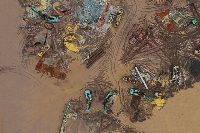 繁忙的工地,在各种机械的操控下,土地上一道道车辙展现出了杂而有序的线条。