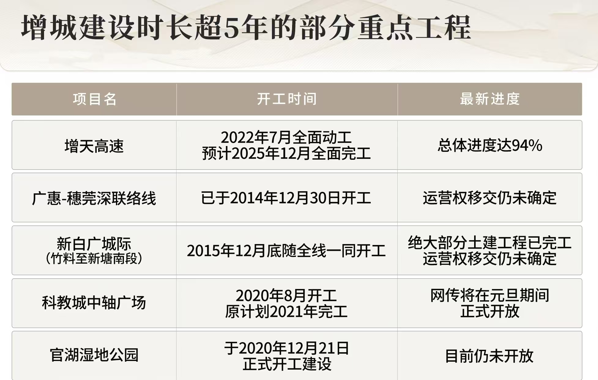 据不完全统计,光是建设时长超过5年的工程,增城就至少有4个。