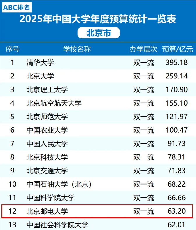 从具体数据来看,北邮2025年度预算经费达63.20亿元,在北京市高校中位列第12名。这个数字或许不及清华、北大等顶尖985高校那般耀眼,但作为一所211工程大学,其经费规模已然远超多数同类型地方高校,更直观折射出国家对信息科技人才培养的战略重视。