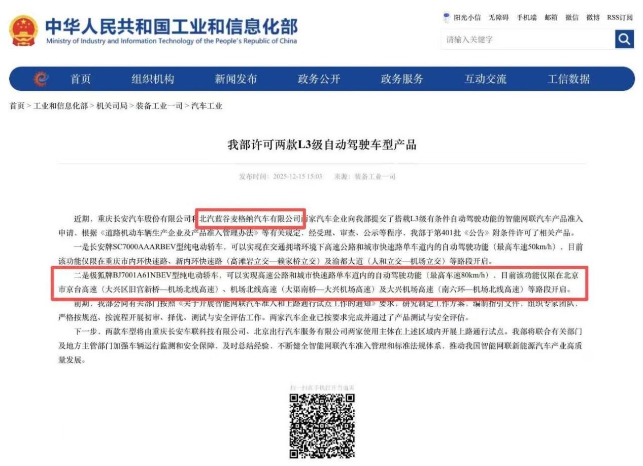 当智能汽车从“辅助”迈向“自主”,一张L3级自动驾驶准入许可,成为划分时代的重要标尺。12月15日,北汽新能源极狐阿尔法S(L3版)正式拿下这份“入场券”,即将在京开启限定区域试点通行。这不仅是中国自动驾驶量产应用的关键一步,更让极狐阿尔法S成为了安全与智能的双重代言人。