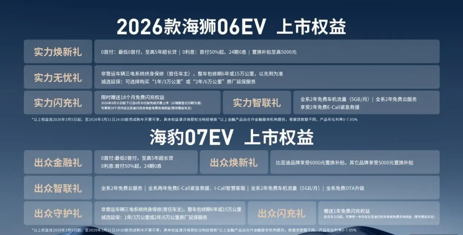 海狮 06EV 主打家用全能,-30℃极寒天气也能快速充满,最长续航跑到 710 公里,周末跨省出游不慌不忙,15.99 万起就能拿下顶配级体验