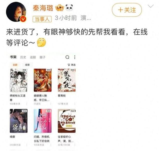 这甚至引发了一个小趣事:由于频繁阅读霸总小说,秦海璐俨然成了一些好奇心爆棚的网友们的“跟踪目标”。