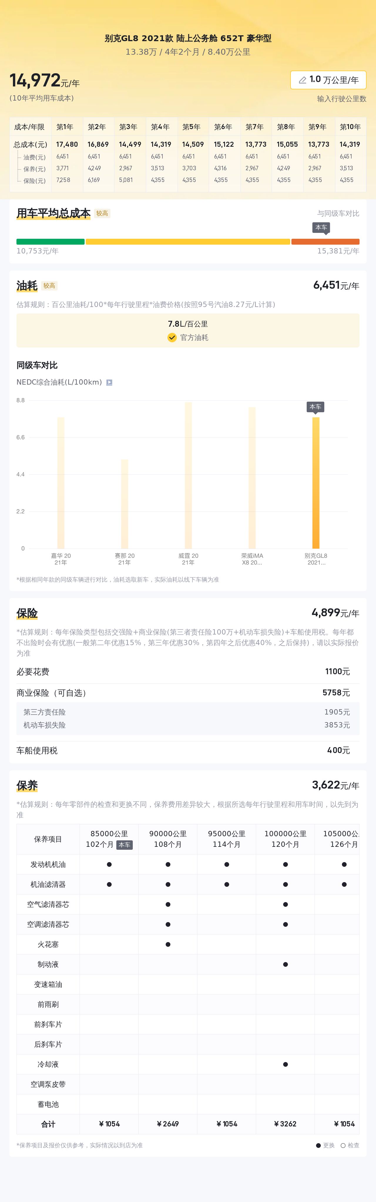 在用车成本部分,根据估算,这辆车的年均综合用车成本约15278元,不过这个跟车主的实际用车场景和使用强度有关,这个数值仅供参考。