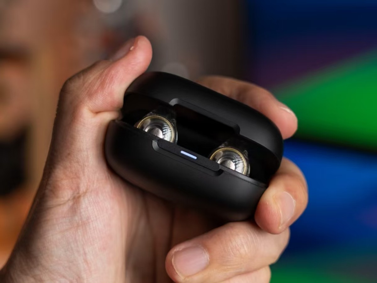 单耳仅有5.4g,外观设计轻薄小巧,基本上就是一枚硬币的重量。采用小圆头耳夹和多曲率软梁设计,搭配镍钛丝减细处理,佩戴稳固且贴合耳廓,长期使用不会明显感到压力。入耳检测功能可以自动播放或暂停音乐。