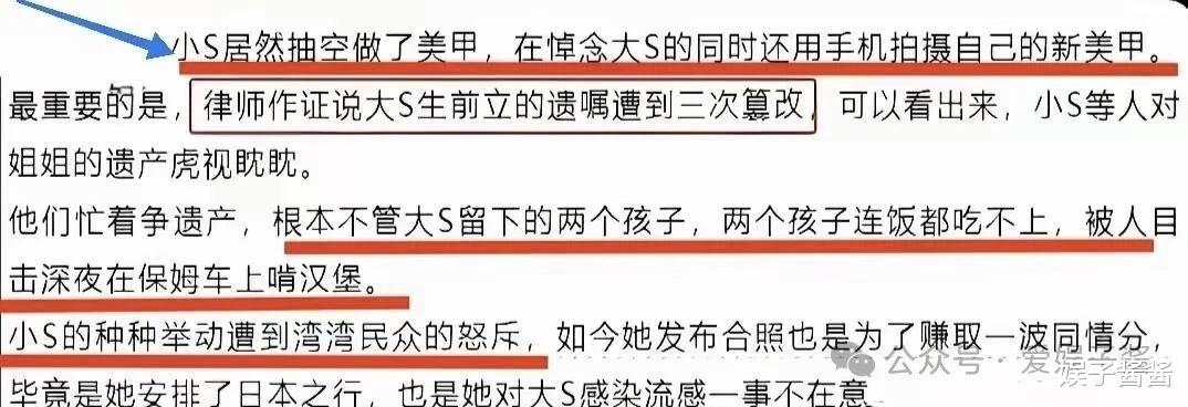 更劲爆的是,小S过往言论被翻旧账。她曾在节目中将大S被具俊晔“把尿”的隐私当笑料,却避谈姐姐长期患病的实情。就连前姐夫汪小菲都忍不住暗讽:“生病五年不重视,现在装什么姐妹情深?”