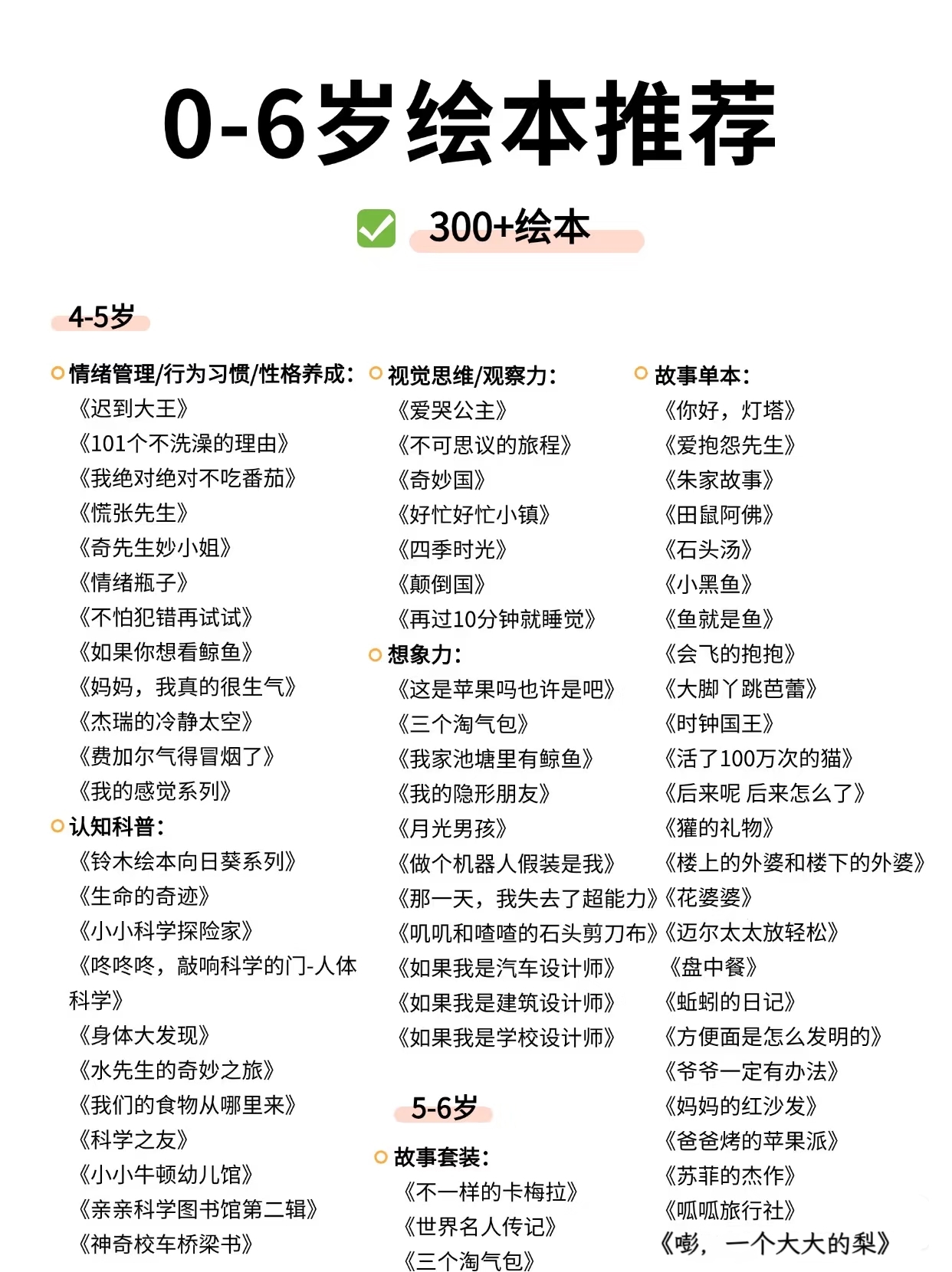 呕心整理的0-6岁绘本清单