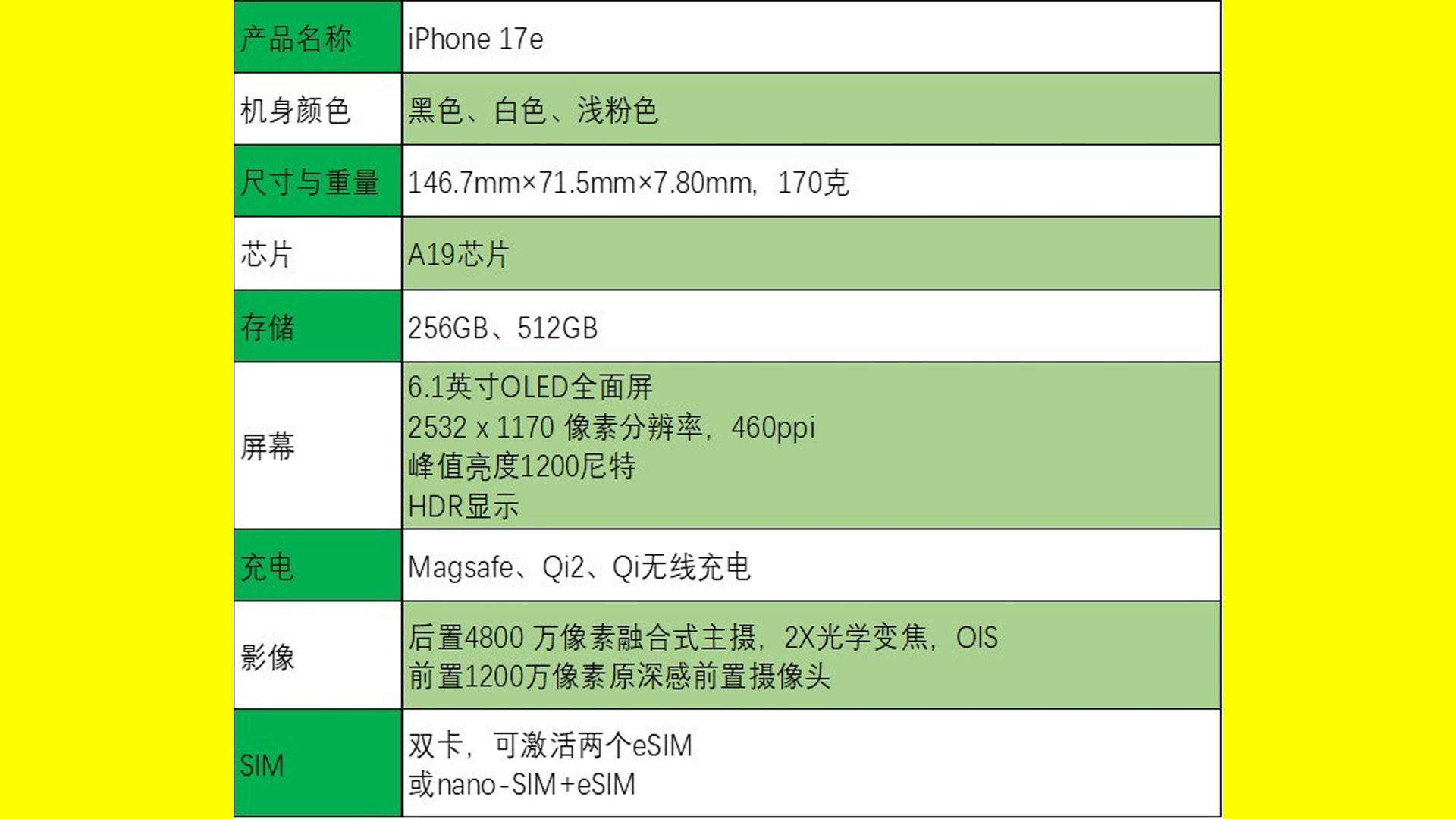 2026 年手机市场普遍因成本上涨调价,这款机型却做到了核心配置升级,妮儿核对了苹果官方发布的 iPhone17e 全部参数信息。