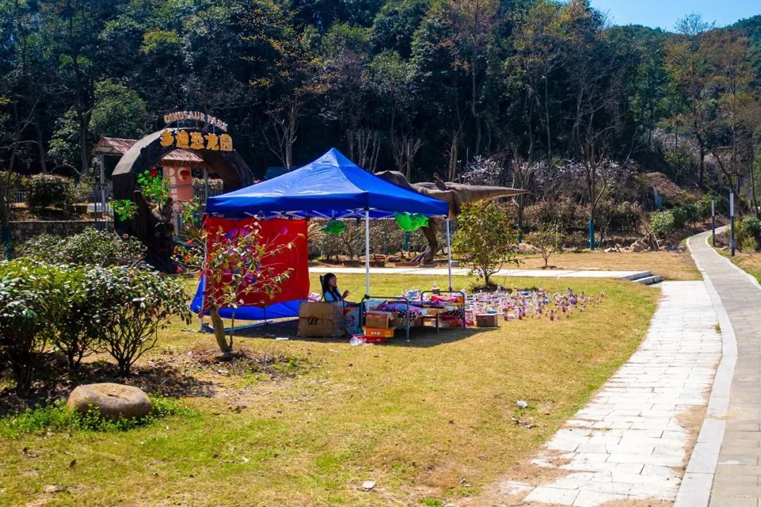 张村樱花谷是个野趣横生的地方,如果你带足了装备,是可以到樱花树下摆烂的(但我不知道露营装备能不能上景交车哦)。目测樱花深处已经开辟出专门的露营营地,餐饮为数不多,但生意都很好。只是当我看到角落里这个套圈圈的摊位时,不禁觉得有点喜感,大概是学生或者刚步入社会的孩子过来练摊,不只位置选得偏,看到有人上前打量,她竟然不起身迎客,反而转过头去,假装没看见,哈哈。