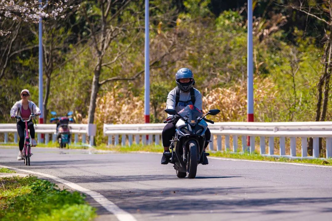 这里也要感谢张村对广大摩友的“放纵”,在如此优美的环境中穿梭是件非常惬意的事。不过碰到人员密集的路段,大家还是请自觉放慢车速,尤其看见婴儿车或者怀抱幼儿的游客时,建议都可以空档滑行一段,再慢慢拧油门。为人父母过的都应该懂这个道理,特别是婴幼儿如果正在睡觉,不管吵没吵醒,家长都会很闹心的。