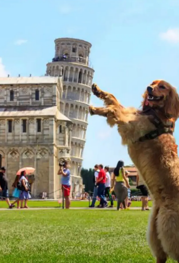 1.这个角度看,就好像金毛在扶着斜塔,真是令人惊叹啊!