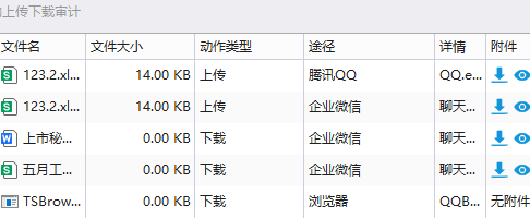 上传下载追踪:监控文件上传至网盘、下载来源(如种子链接)等行为,记录操作人、时间、路径等信息。