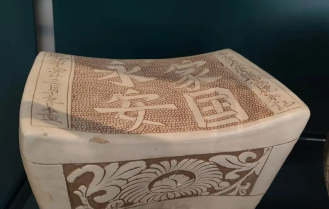 大英博物馆一个角落里的一个花瓷枕,上面写着“家国永安”