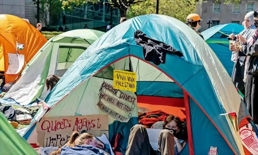 当时美国各地的大学纷纷爆发抗议活动,很多学生在支持巴勒斯坦的同时,也开始将所有问题归结到犹太人身上,抗议标语中不乏“从河到海”、“驱逐犹太人”等极端口号。