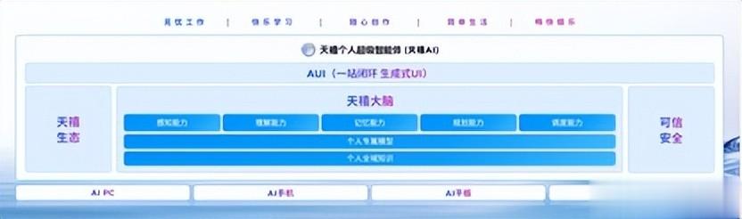 天禧AI由AUI、天禧大脑、天禧生态和可信安全平台构成,拥有感知、理解、记忆、规划、调度五大能力。天禧AI 3.5实现了“三大飞跃”:首先是个性化飞跃,依托“全时空主动记忆”技术,结合全域知识库,生成因人而异的个性化答案;第二是行动力飞跃,通过超级智能体工作群,实现多智能体协同,如AI播客、ChatExcel、超级互联3.0都是其代表应用;第三是交互体验飞跃,天禧AI 3.5具备多端协同感知,统一的AUI,让用户获得始终如一的智能体验。