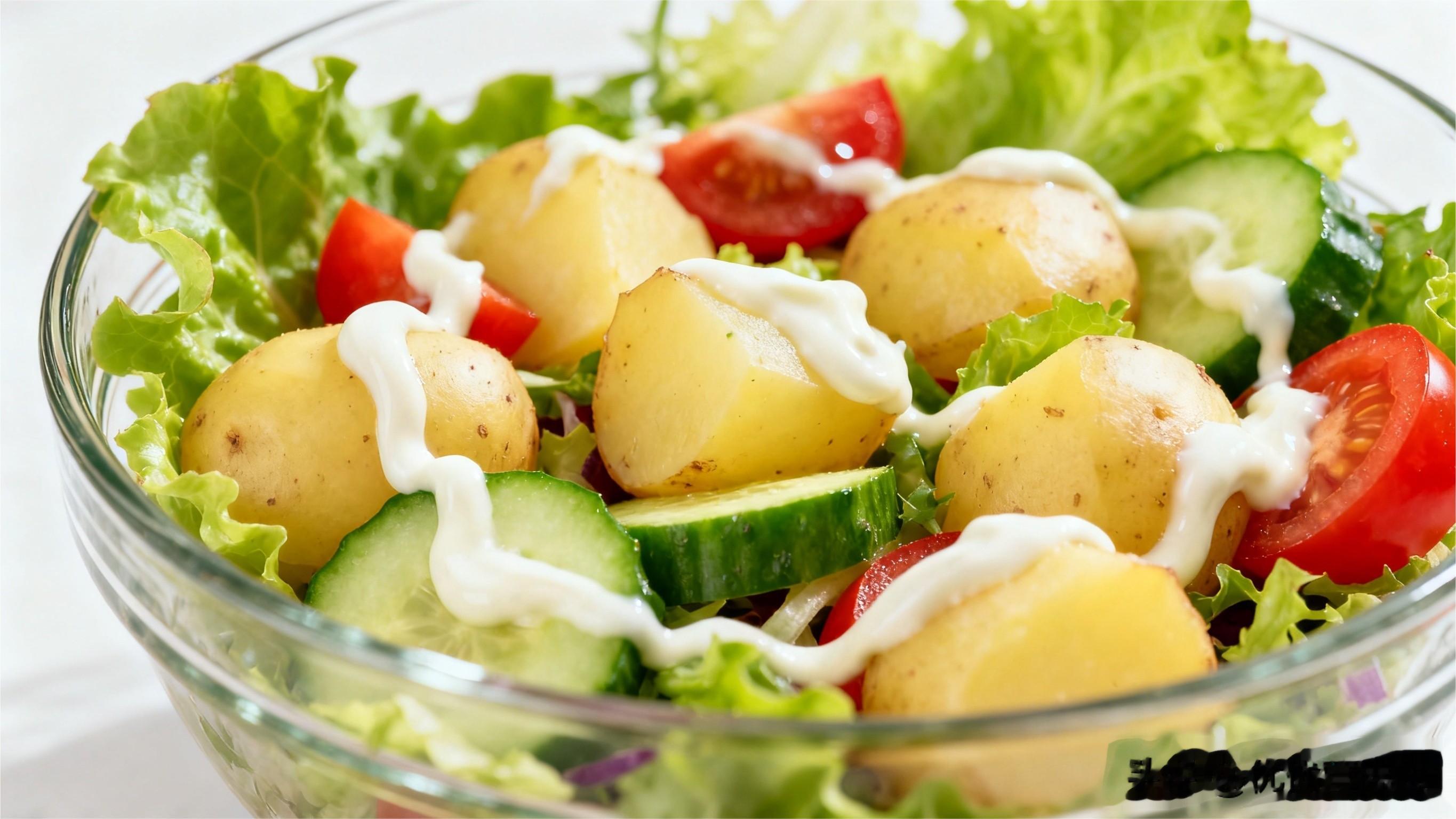 做法:土豆煮熟切小块,搭配生菜、黄瓜、番茄这些低卡蔬菜,再淋上低脂沙拉酱。这道菜色彩丰富,营养均衡,土豆的淀粉能提供一定能量,蔬菜又富含维生素和纤维,帮助消化,促进新陈代谢,助你轻松掉秤。