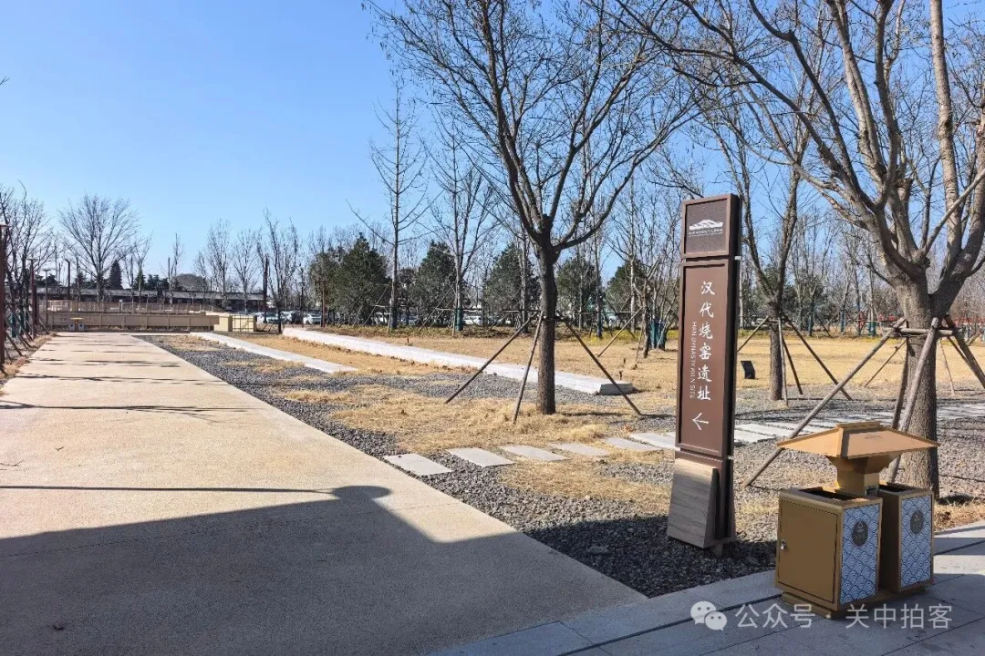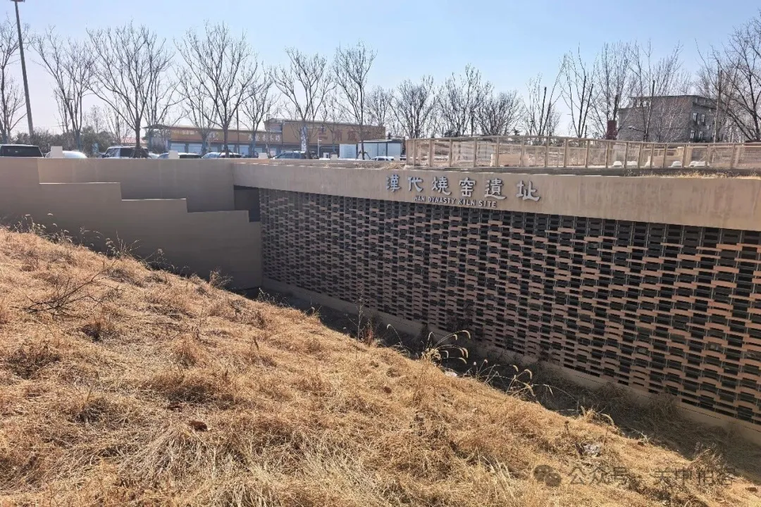 在大道的西侧约100米处,保留着一处汉代烧窑遗址,展厅大门紧锁,暂时没有开放。这里位于汉魏故城遗址雍门外大道的北侧,由烧窑、圆形砖池、操作间、房址等遗迹组成,以烧窑为核心,兼备全部生产链条。