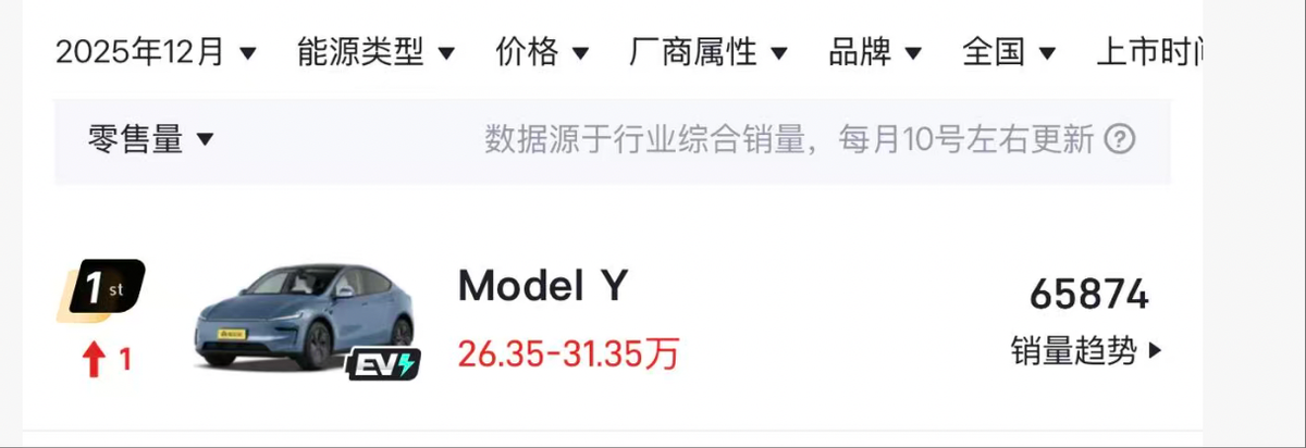 大家可以看下数据,上个月全品类销量最好的车是谁?是特斯拉啊!上个月Model Y卖了6万多台车,25万的电车能有这样的销量有多恐怖?这是同价位BBA三款车型都卖不出来的成绩。