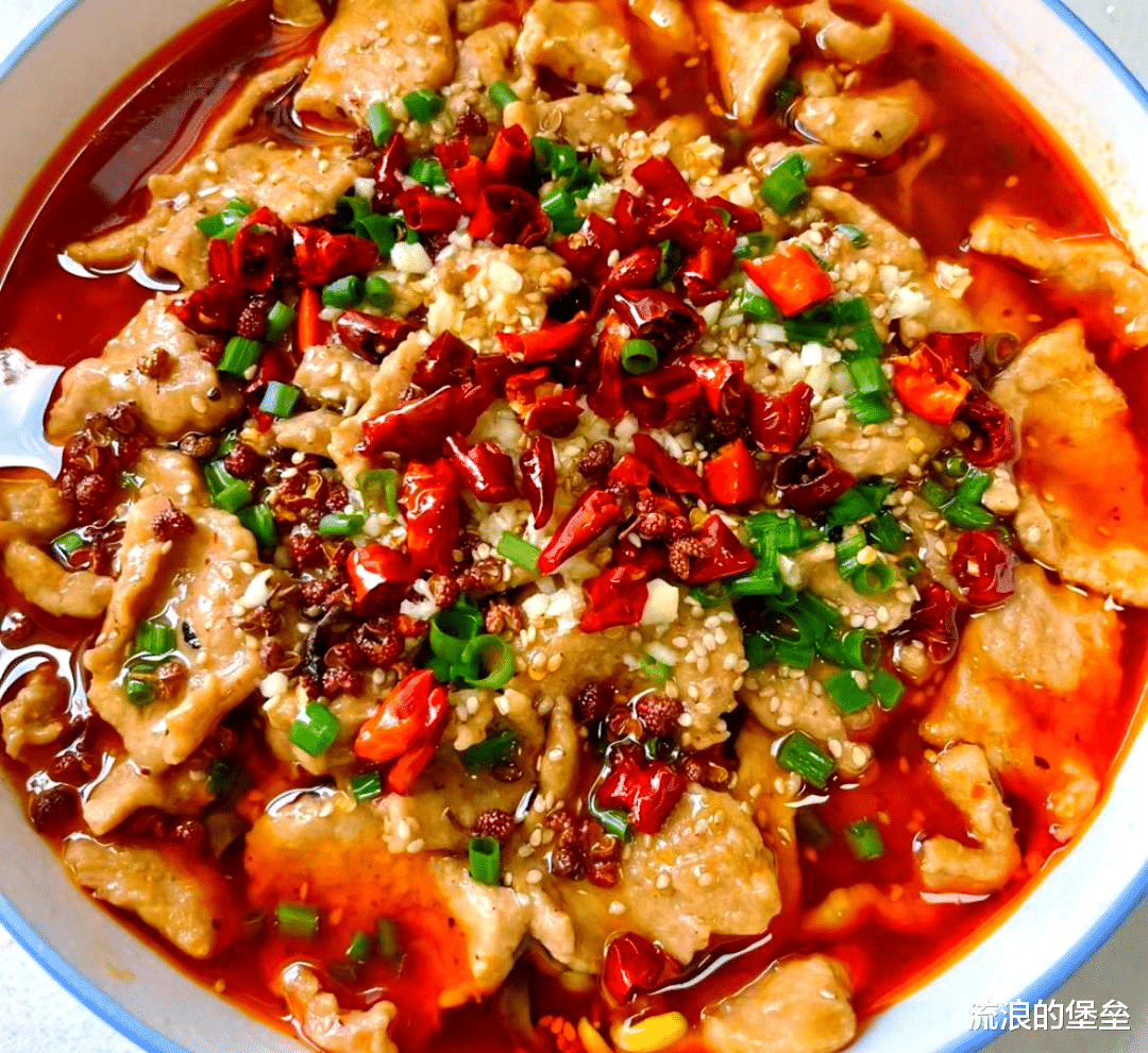 第三道就是水煮肉片,虽然是川菜,但是在全国各地都非常火爆,不管是去饭店还是在家里,尤其是现在还有专门的水煮肉片的调料,锅里一炒,加点蔬菜和肉,浇上一层热油,香味直接蔓延,虽然稍微有点油,但是配饭吃太绝了!