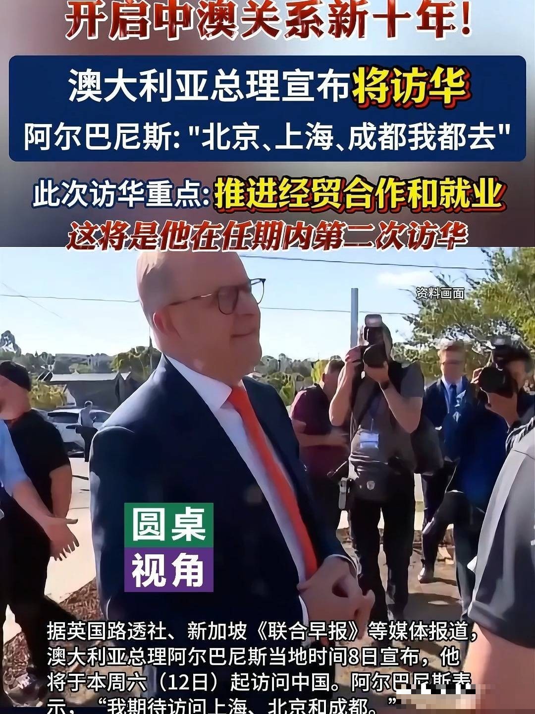 《澳总理开启7天访华行程,澳媒:贸易、旅游、教育和体育合作是此访关键词》——环球网,2025-07-14