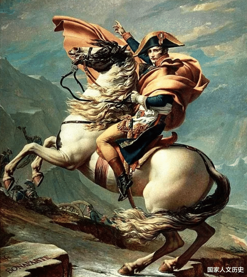 《跨越阿尔卑斯山圣伯纳隘道的拿破仑》,雅克-路易·大卫绘。来源/维基百科
