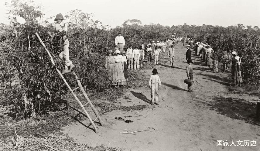 20世纪初,巴西种植园里采摘咖啡豆的劳工。
