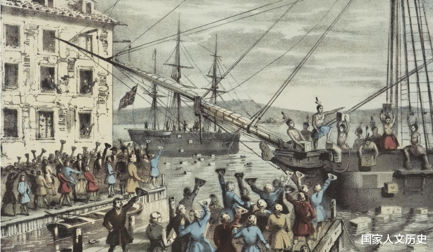 《在波士顿港倾倒茶叶》,纳撒尼尔·柯里尔绘。来源/维基百科